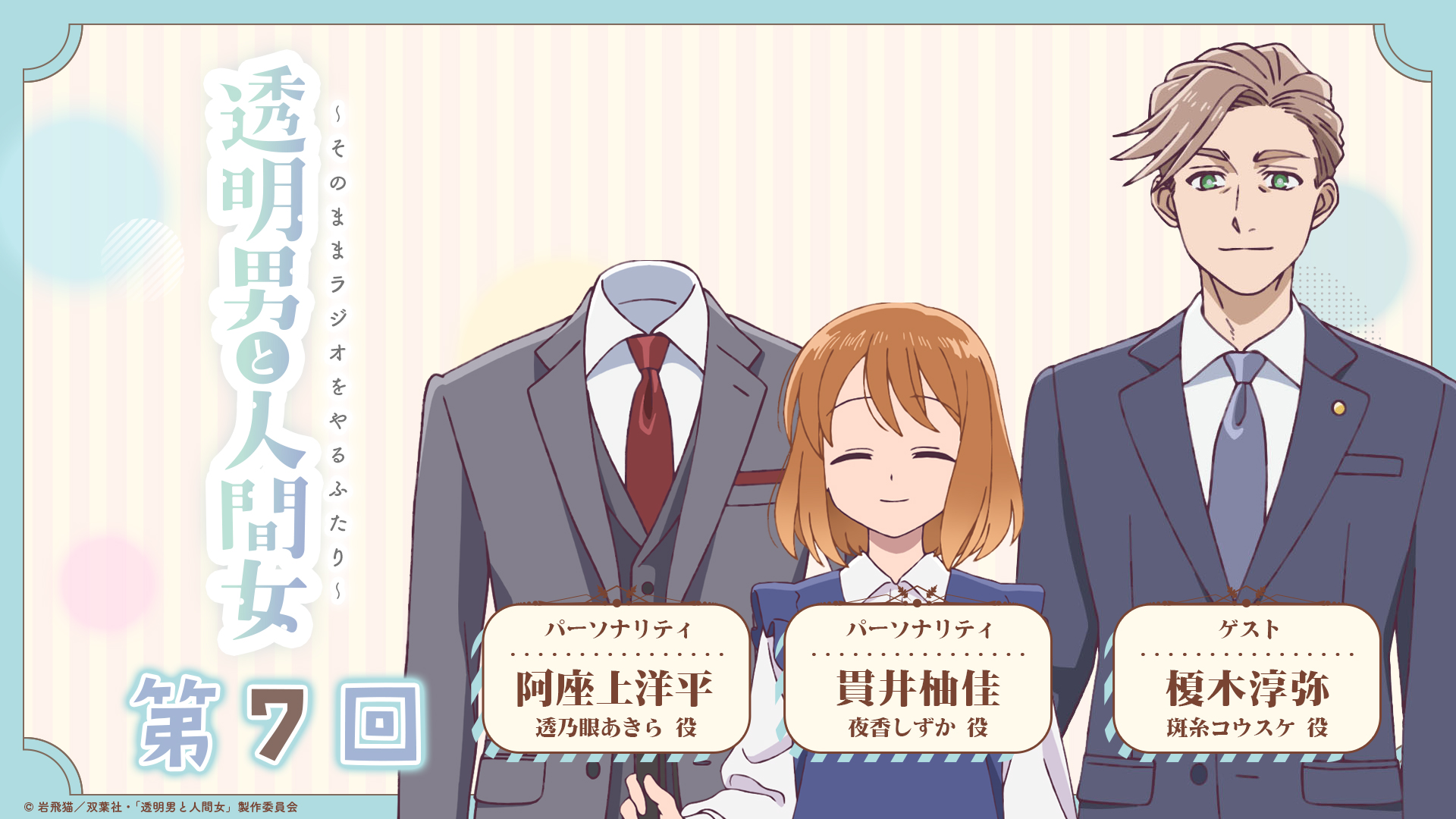 TVアニメ『透明男と人間女~そのうち夫婦になるふたり~』の公式ラジオ「透明男と人間女〜そのままラジオをやるふたり〜」第7回が配信開始しました!